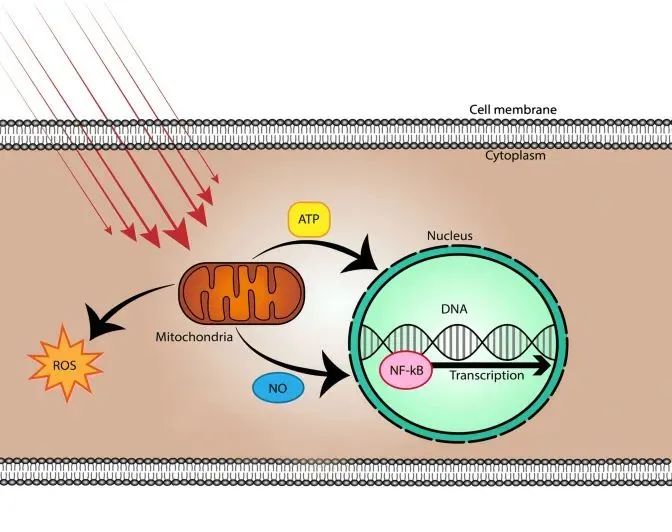 通过红光高科技纳米技术,照射全身产生光化学效应